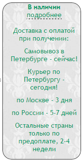 - Статусы наличия - в наличии и под заказ.