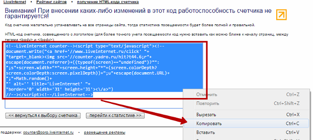 - Установка счётчика Live Internet